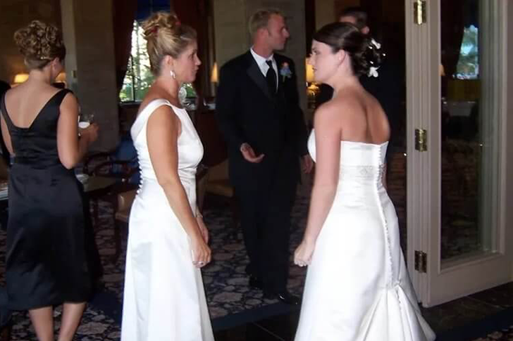 Die Frau, die nicht die Braut ist, hat in diesem Bild offensichtlich die wichtigste Hochzeitsregel vergessen, und dieser äußerst unangenehme Moment wurde auf dem Foto festgehalten. Es ist ziemlich klar, dass diejenige, die die Faust macht, die Braut ist, und sie scheint aus allen richtigen Gründen verärgert zu sein. Die Spannungen zwischen den beiden liefen wahrscheinlich die ganze Nacht hoch; sicherlich war es nur ein kleines Hindernis und hat ihren Hochzeitstag nicht ruiniert.